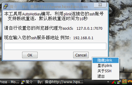 - 3:隐藏和显示plink黑窗口的菜单在托盘区右键。默认不隐藏